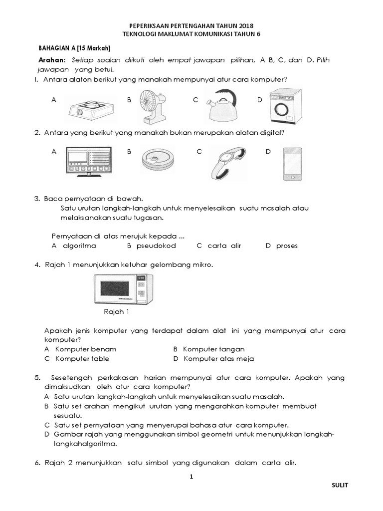 Sk Telok Pulai Taman Bertek Klang Ujian Pentaksiran 1 Teknologi Maklumat Dan Komunikasi Tahun 6 Masa 1 Jam Nama Person Personalized Items